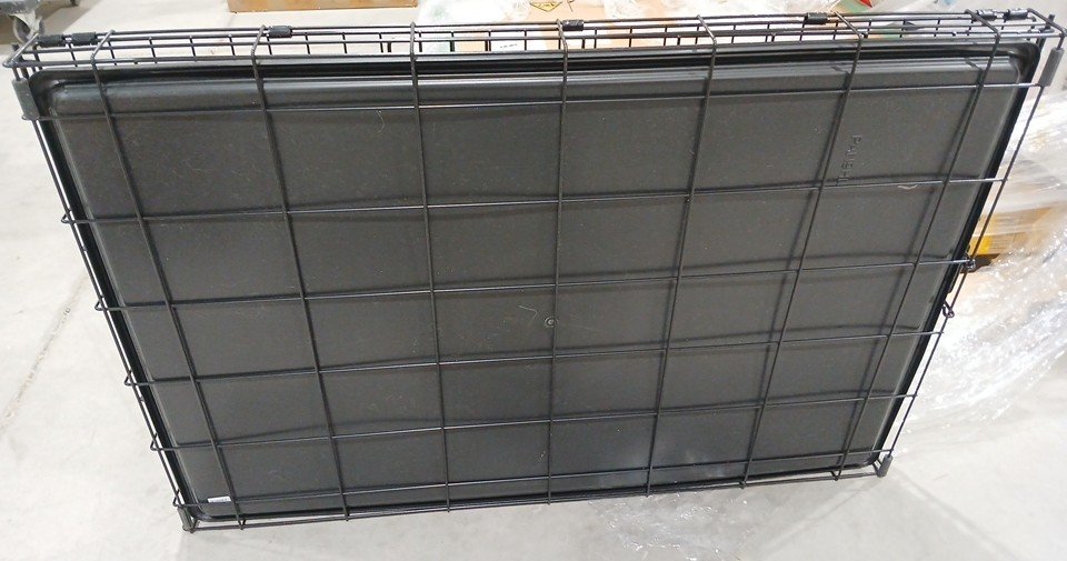 NEW WORLD PET PRODUCTS DOUBLE DOOR FOLDING METAL DOG CRATE WITH LEAK-PROOF PLASTIC TRAY - 42"L X 28"W X 30"H - BLACK (MODEL: B42DD)