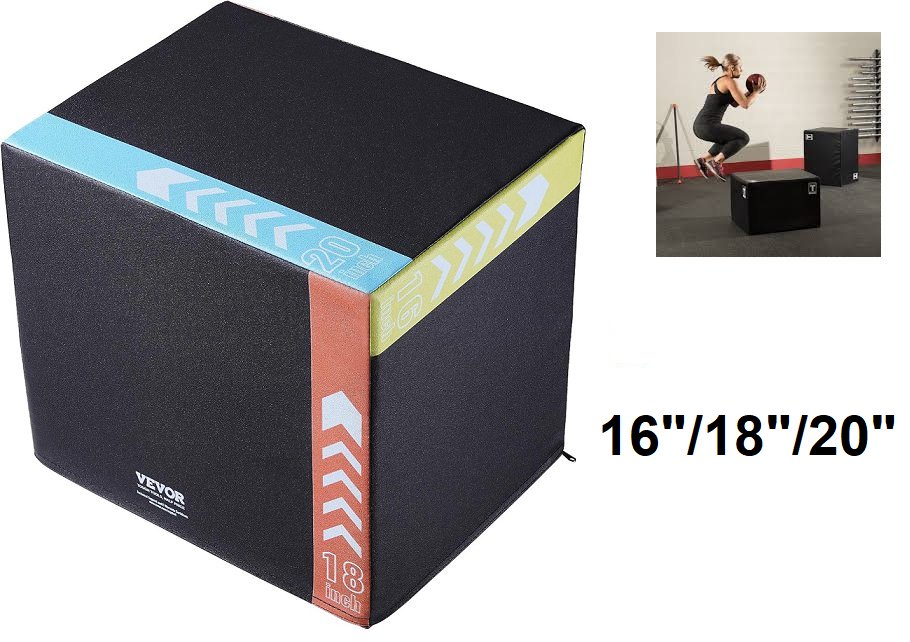 3 in 1 Plyometric Jump Box Cotton Plyo Box, Platform & Jumping Agility Box - 16"/18"/20" - black/multicolored (model: ss-z-20-18-16)