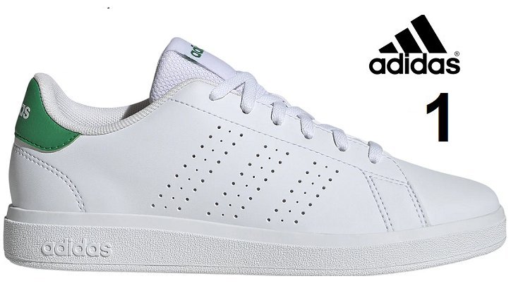 Kids unisex adidas Advantage Base 2.0 Shoes - size 1 - white / green