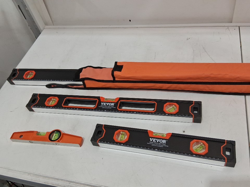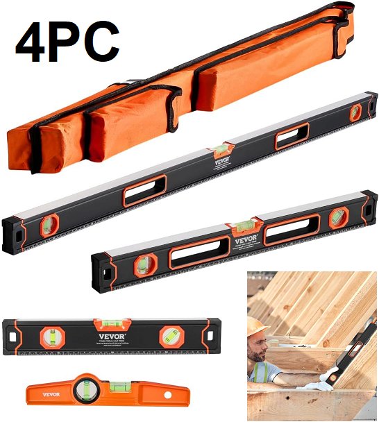 4Pc Torpedo Level - 48/24/16/10" Box Levels Set, Fluorescent Light Up Bubble Vials, for 45/90/180 Degree, Aluminum Alloy, Shock-Proof - black/orange (model: sp-n4)