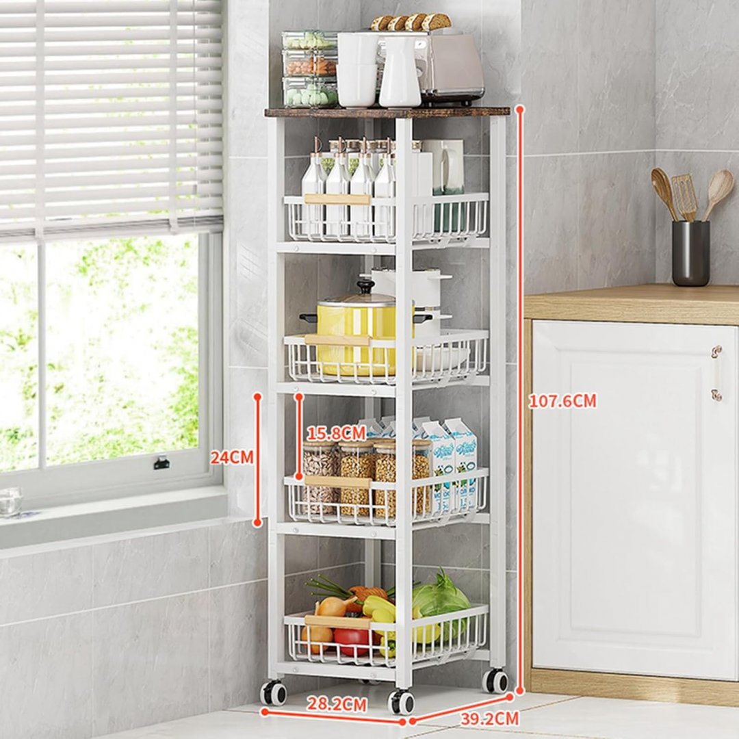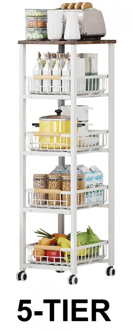 Fyzeg 5 Tier Metal Storage Shelving Unit with Wheels - WHITE