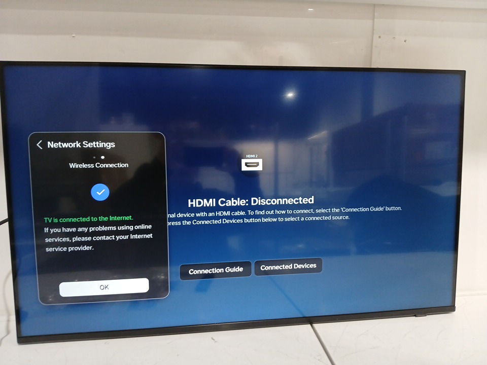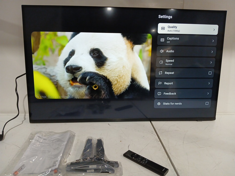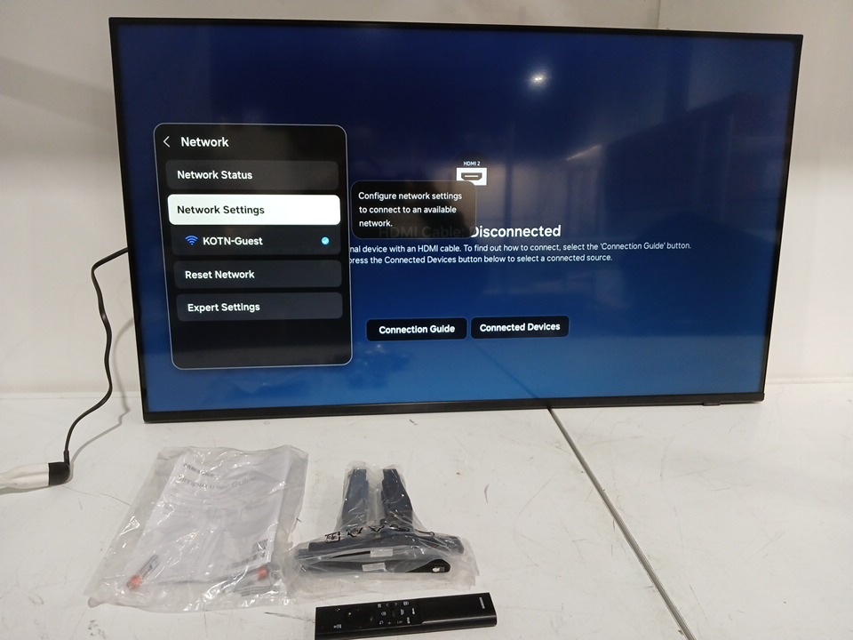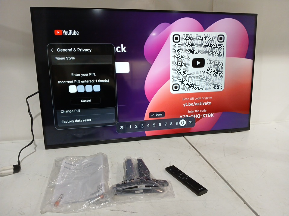 the tv has been tested for power & connectivity. there maybe some generic hardware pieces for the legs to the tv. due to the tv having a previous account the PIN to reset is not known so cannot factory reset.