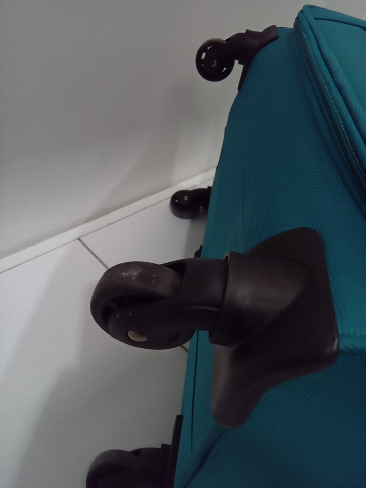 appears that the wheels are slightly use as there is some debris and dirt on the bottoms (See photo)