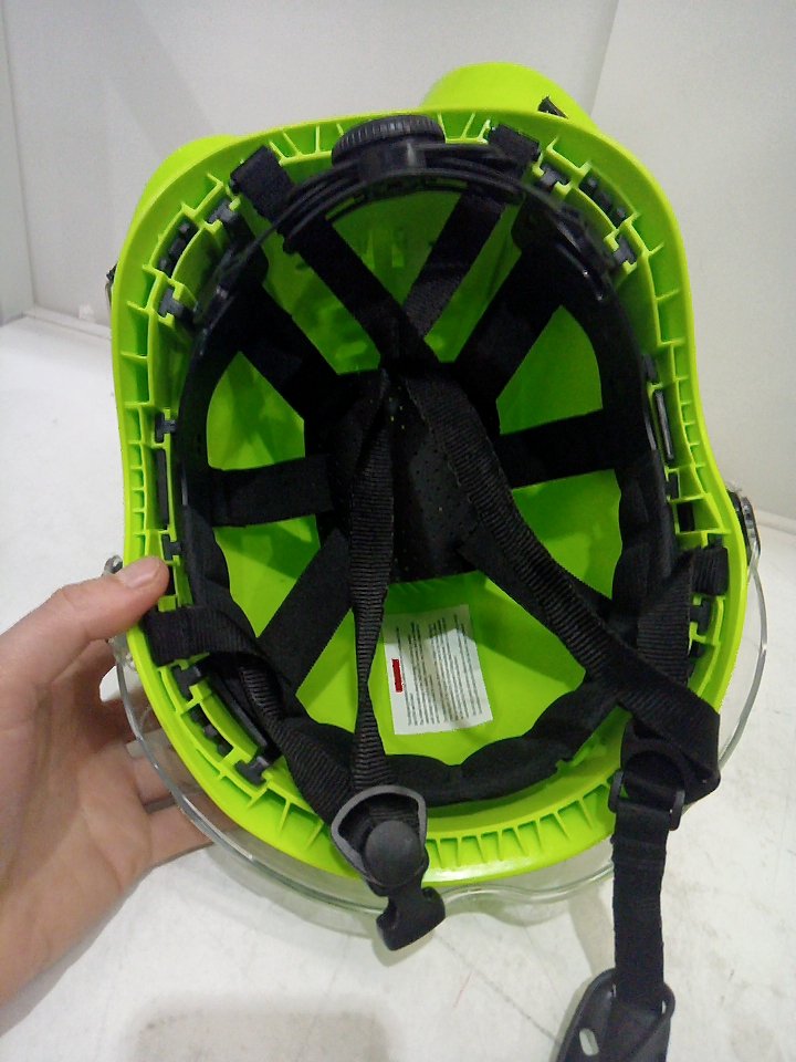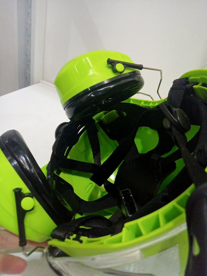 safeyear safety hard hat with anti scratch glasses, earmuffs - chin strap reflective ventilated abs hard hat - osfm - green