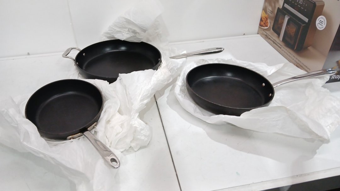 there is some residue on each of the pans from previous use