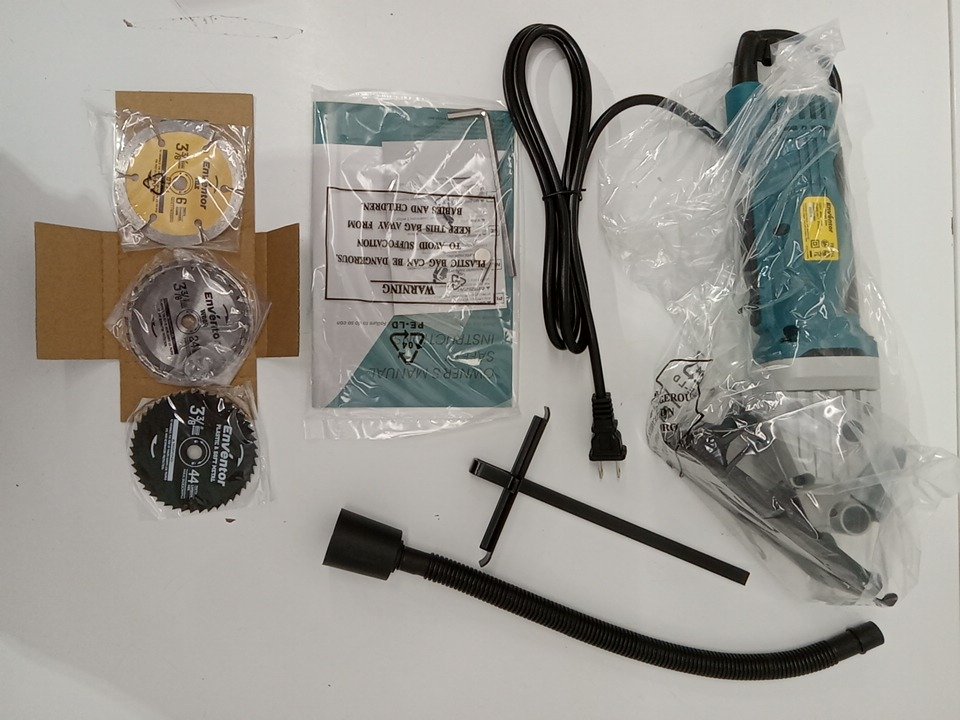 Includes 3 saw blades: - 24T TCT (3-3/8", 85mm) for woodcuts - 44T HSS (3-3/8", 85mm) for wood and soft-metal cuts - Grit diamond blade (3-3/8", 85mm) for tile cuts The photos shown were taken from the original first listing that helped us indicate colour/model. The item you will be receiving will be factory sealed.