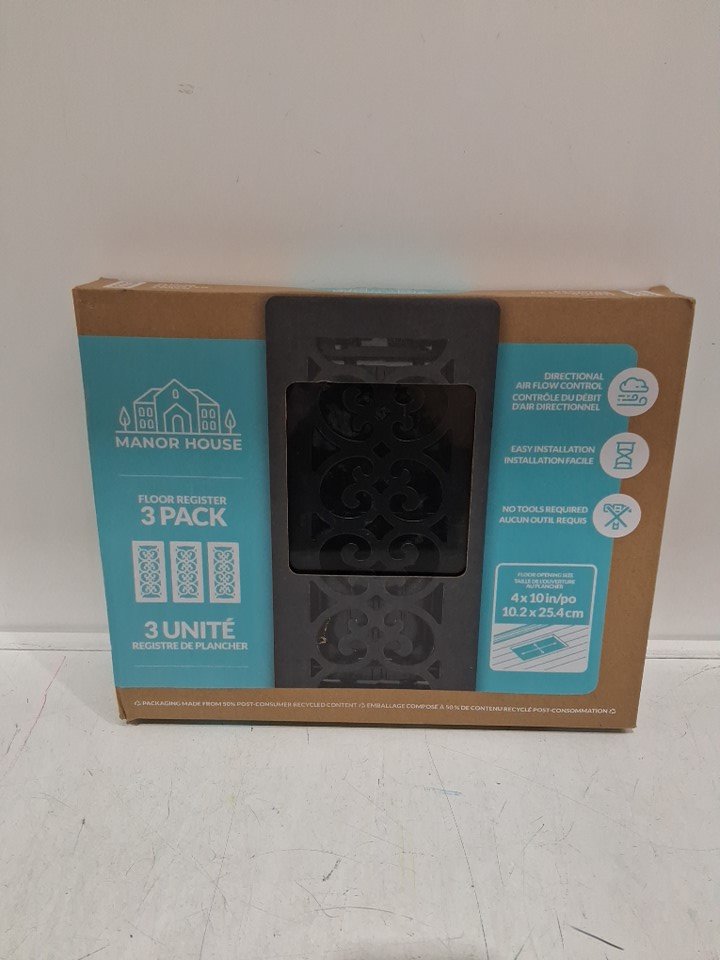 3PK MANOR HOUSE DECORATIVE FLOOR REGISTER COVER - 4" X 10" - BLACK (MODEL: 3333410)