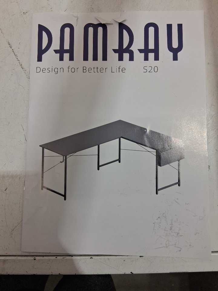 Pamray Reversible L Shaped Corner Gaming Computer Desk with Storage Bag - 64.5" x 47" x 29"- white