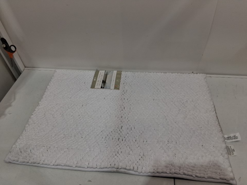TOWN & COUNTRY EVERYDAY Ultra Plush Solid Tufted Border Bath Mat- 2FT X 3FT - WHITE