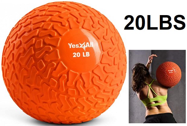 YES4ALL EXERCISE WORKOUT SLAM BALL - ULTRA DURABLE RUBBER SHELL - 20LBS - ORANGE