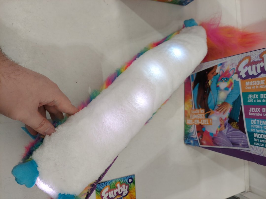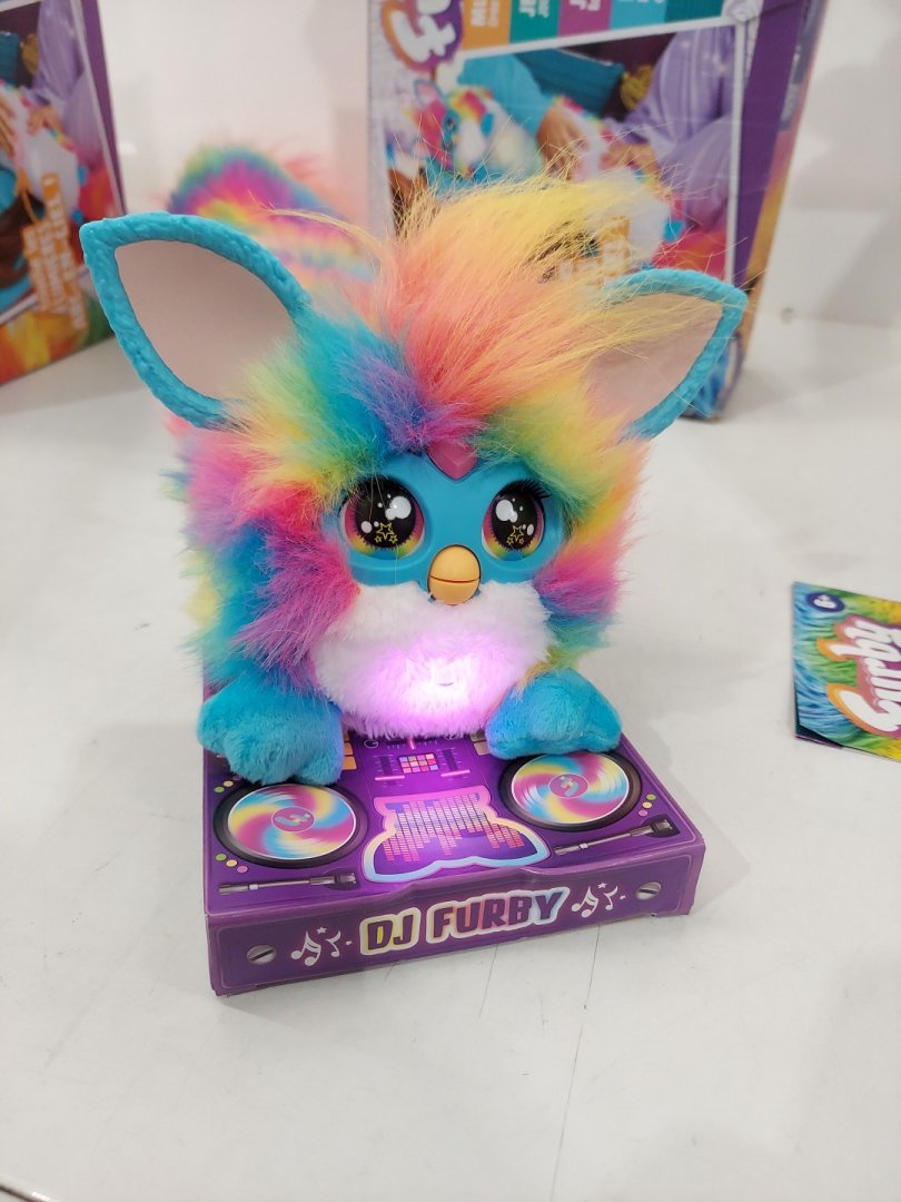 *french version* furby DJ Interactive Super Snuggly Rainbow Electronic Plush with Music, Lights, Motion, and Games - 32" Long