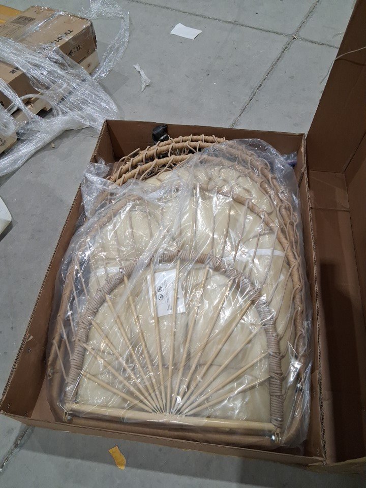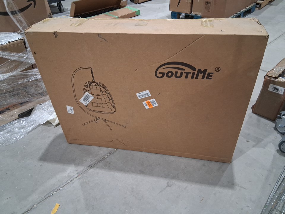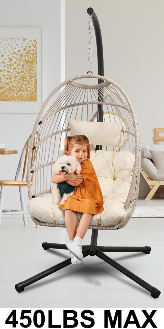 Goutime Folding Hanging Egg Swing Chair and cushion - 43" x 32" x 29.5" - 450LBS MAX - Apricot Gray - (Model: ‎DY001)