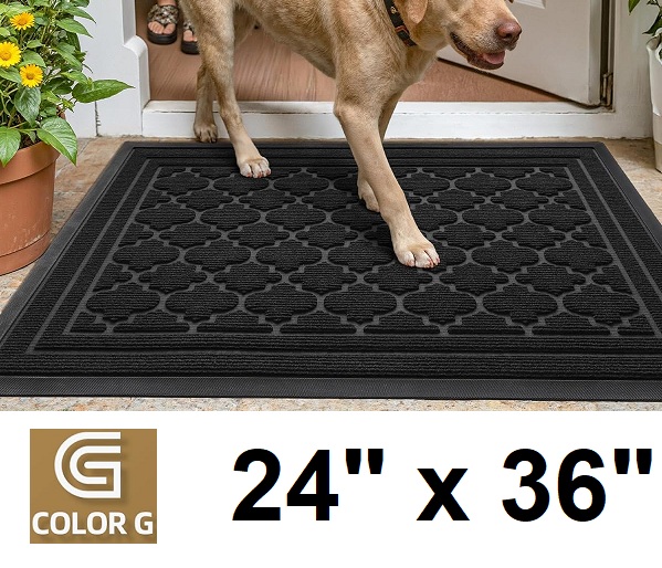 COLOR&GEOMETRY indoor/outdoor non-slip rubber backed DOOR MAT with dirt trapping pattern - 24" x 36" - Black