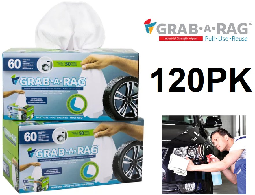 120pk Grab-A-Rag Washable Microfibre multipurpose Rags - white (model: 3330346)
