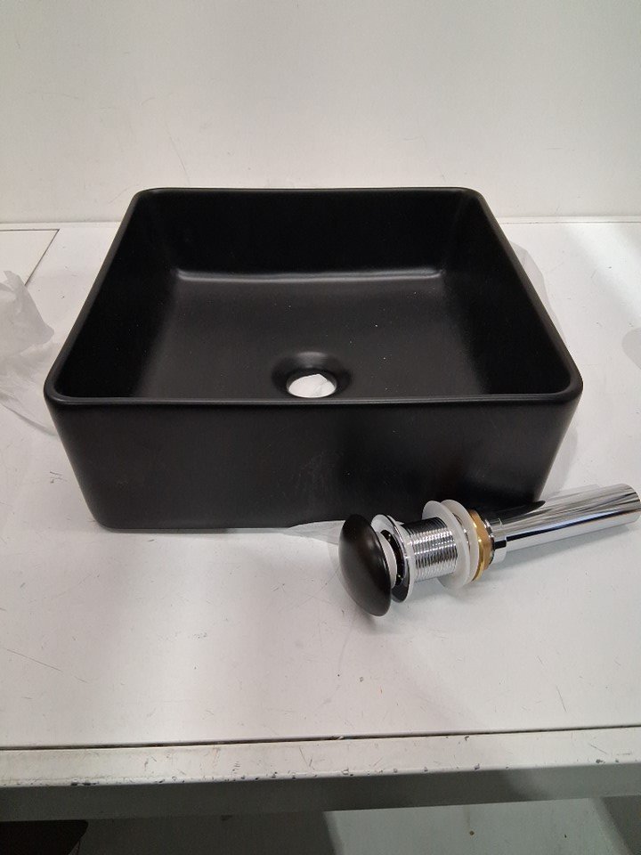 Davivy Square ceramic bathroom vessel sink - 13.7" x 13.7" x 5.1" - Matte Black (Model: ds-0935)