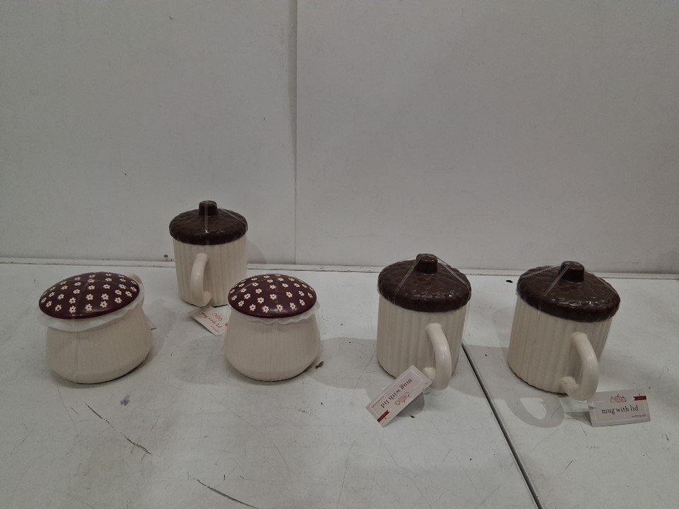 5 Bullseye's Playground Novelty Decorative Mugs with Lids - 20Oz - Acorn/Mushroom