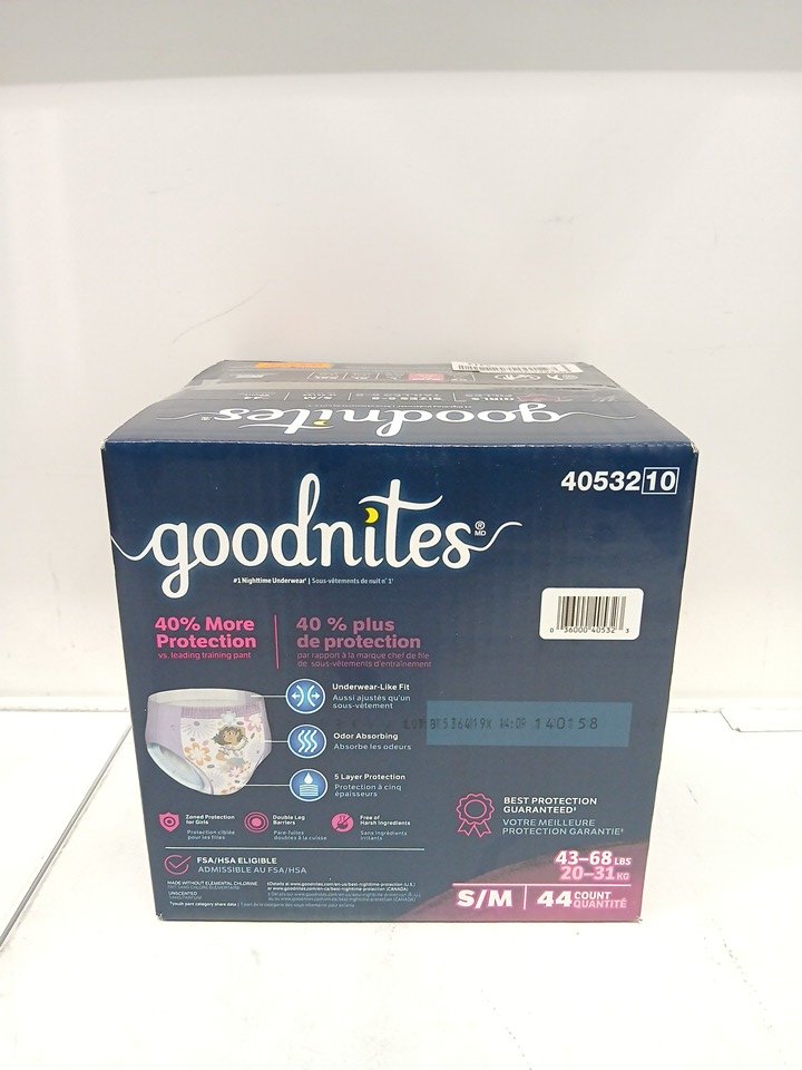 44pk girl's goodnites nighttime bedwetting underwear - SMALL size 6-8 (43-68lbs) - multicolor (model: ‎00036000405323)
