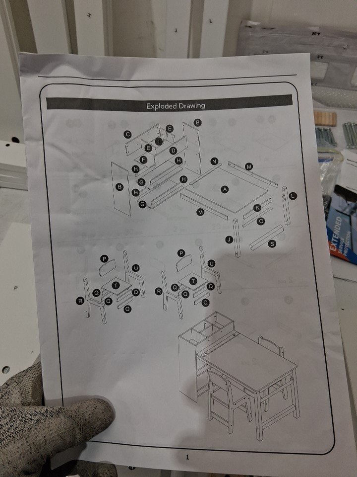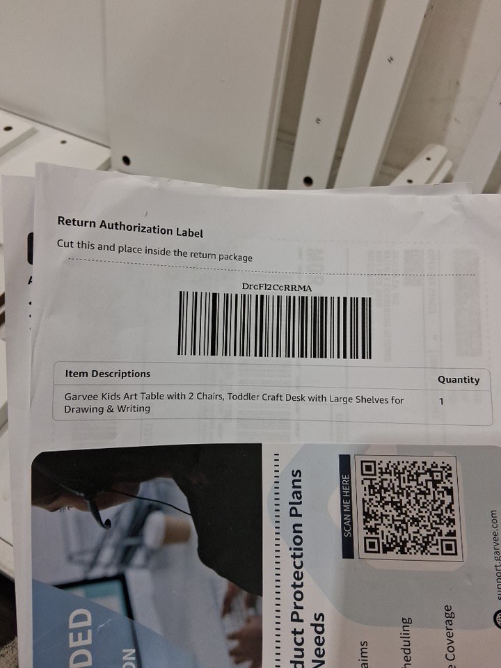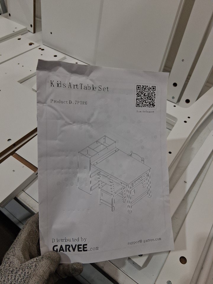 Garvee Kids Art Table with chairs and storage shelves - 42" x 25" x 23" - White - (Model: 7PTR6)