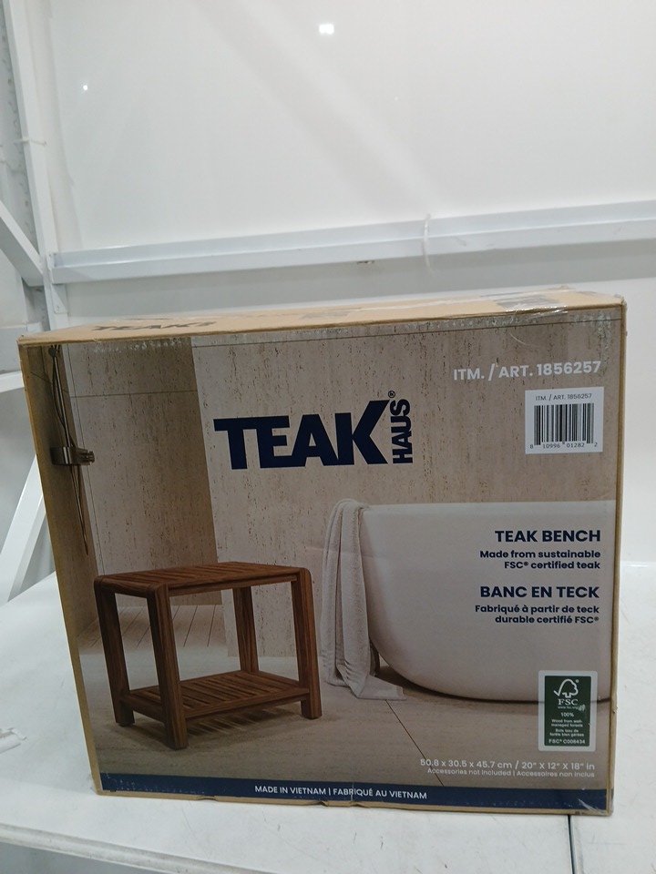 Teakhaus Teak Wood Bench with Storage shelf, F.S.C. Certified, 20" × 12" × 18" - natural (model:1856257)