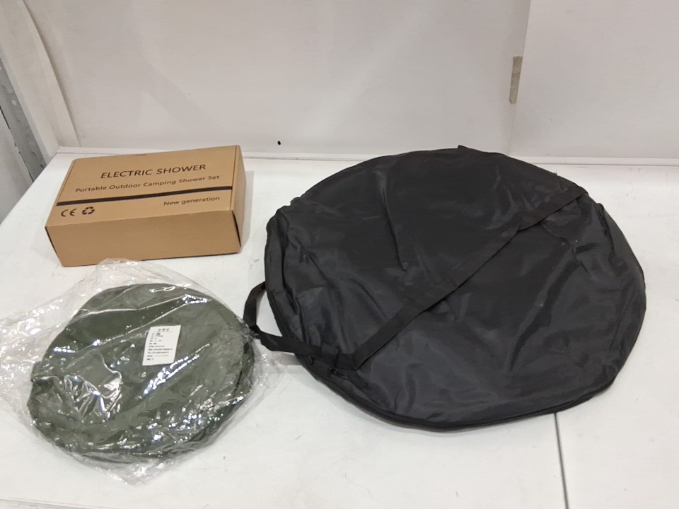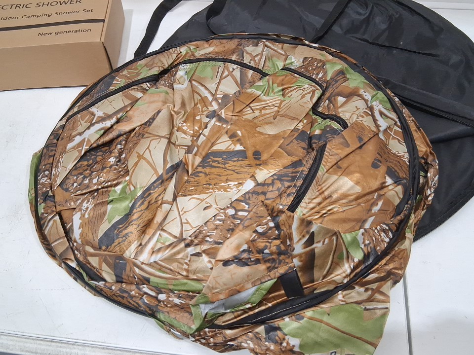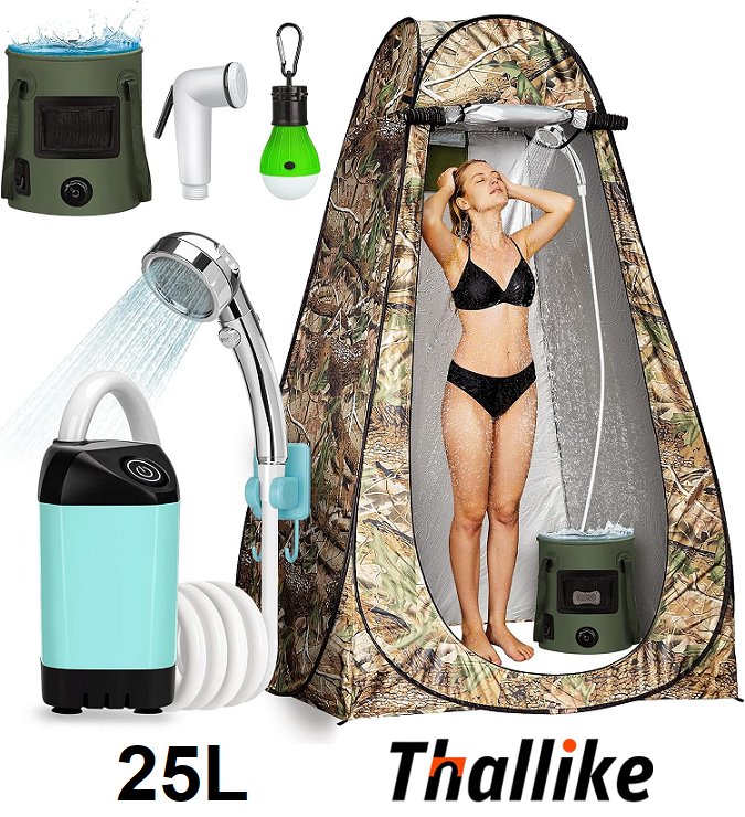 thallike Portable pop up Camping Shower privacy tent kit - Rechargeable Shower Pump with 25l Foldable Bucket - camouflage