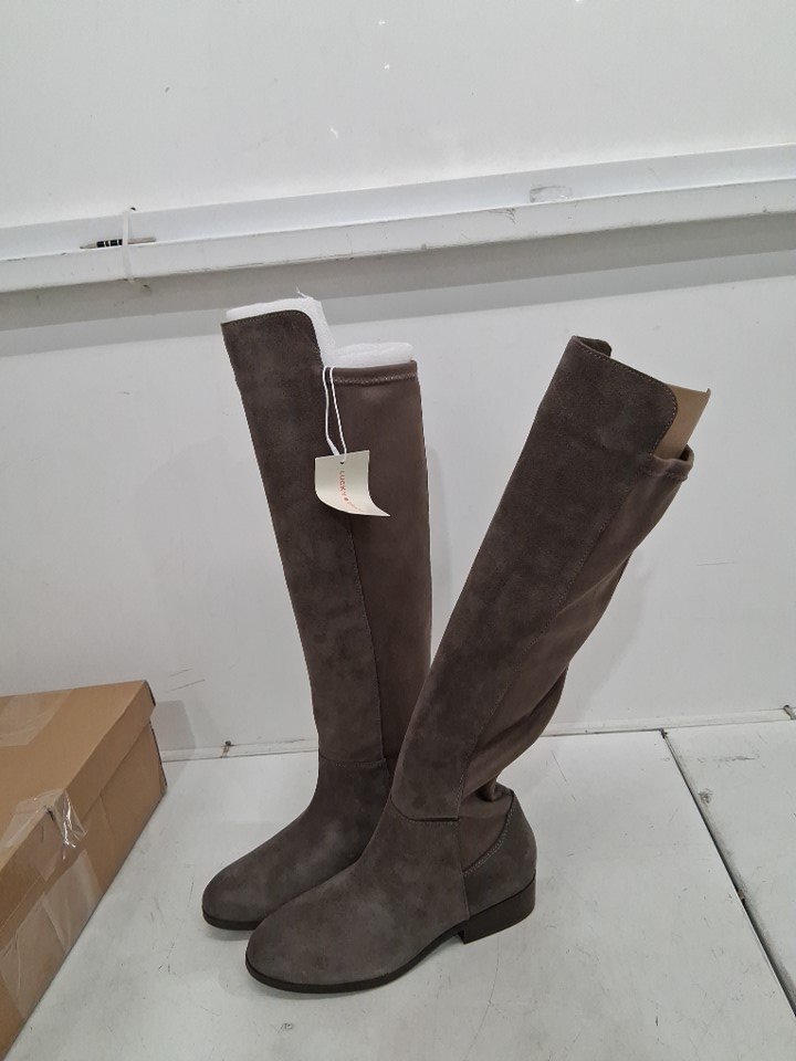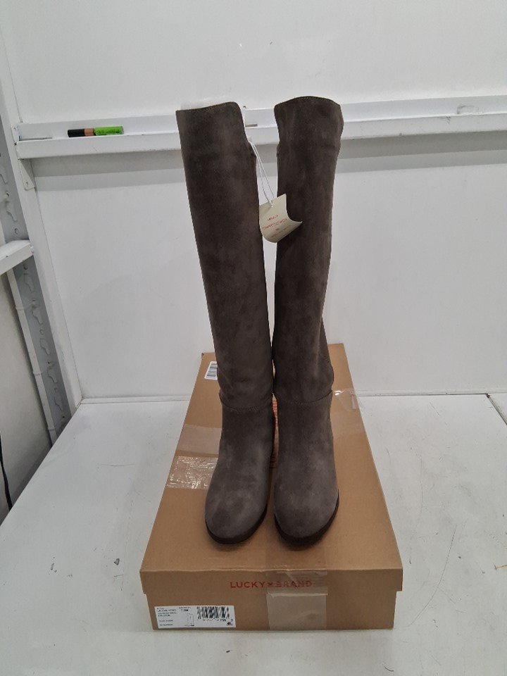 WOMEN'S lucky brand calypso knee high low heel boots - size 7.5 - FALCON (style: lk-calypsow)