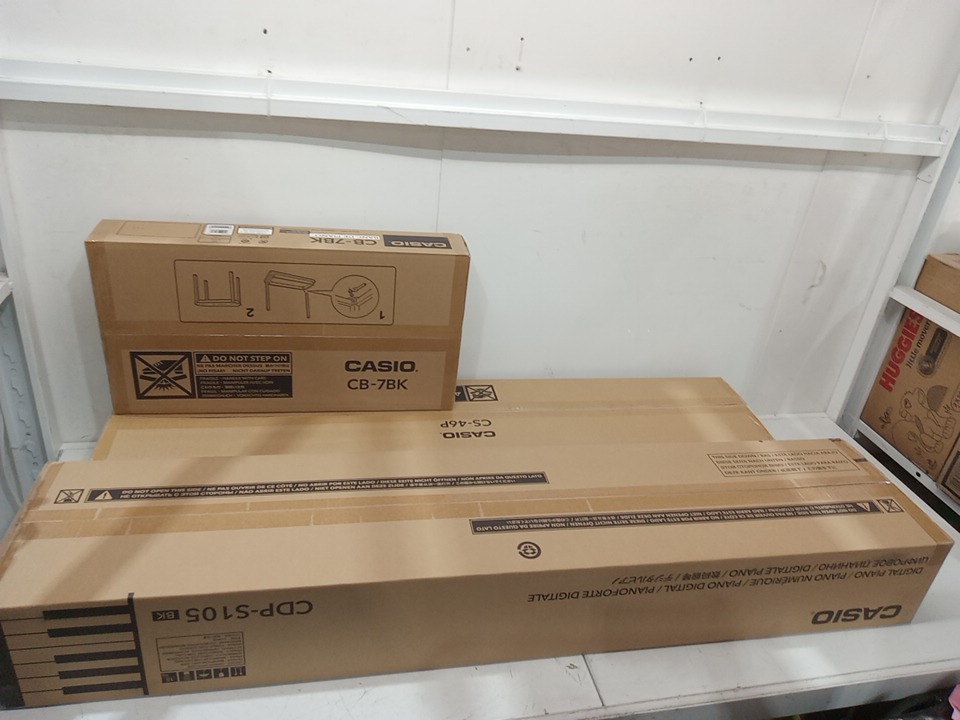 all of the boxes containing the piano, and other parts are sealed, inside the shipping box. please see photos