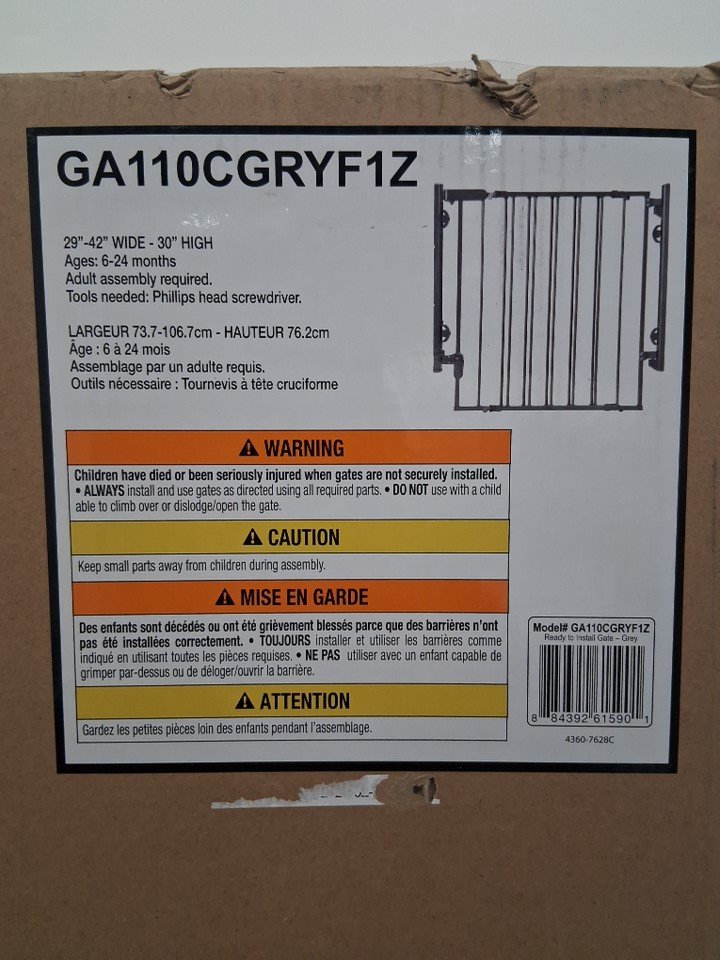 SAFETY 1ST READY TO INSTALL WIDE FULLY-ASSEMBLED BABY GATE - 29" to 42" X 30" - GREY/DARKGREY - (MODEL: GA110CGRYf1z)