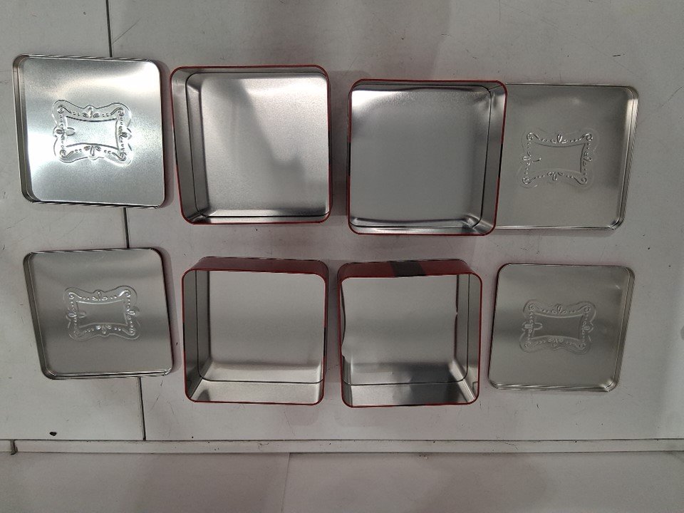 4 Wondershop Christmas Tin Cookie / Gift Box - 8" x 8" - Santa's Belt/Red (Model: 200-04-0829)