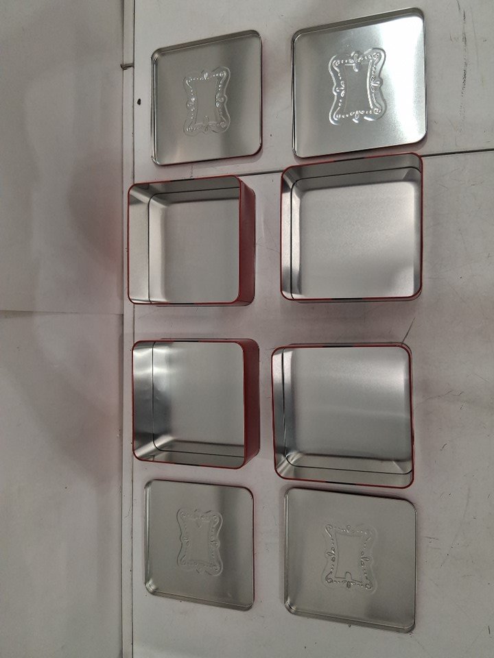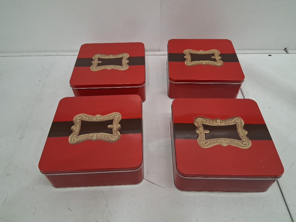 4 Wondershop Christmas Tin Cookie / Gift Box - 8" x 8" - Santa's Belt/Red (Model: 200-04-0829)