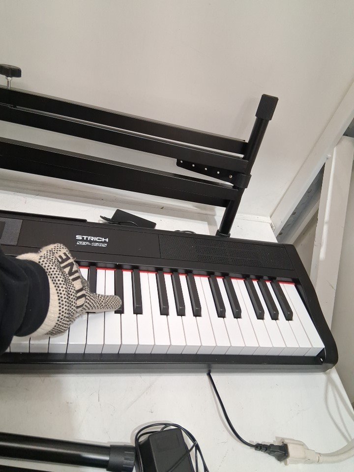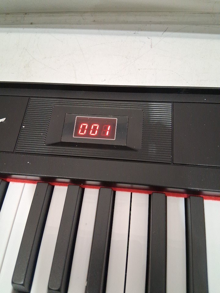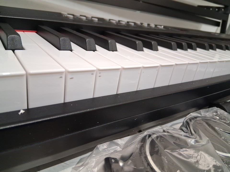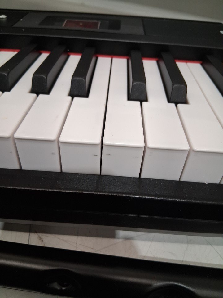 Please note item has some scuffing/marks on keys and some scratches on stand showing previous use. There are about 6 keys that are not working and will need to be fixed for proper functionality. See the images attached, the keys with the fingers on them are not functioning. Item may be missing some hardware.