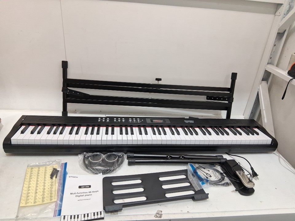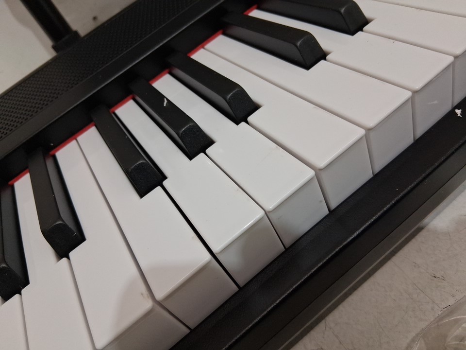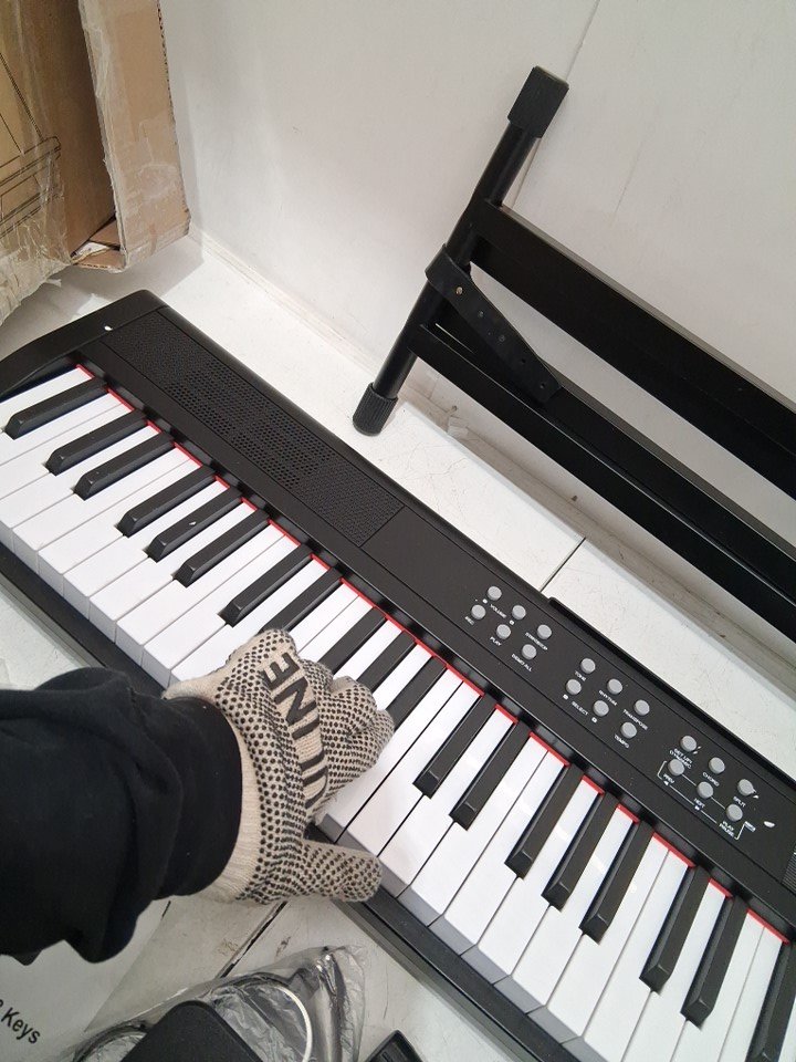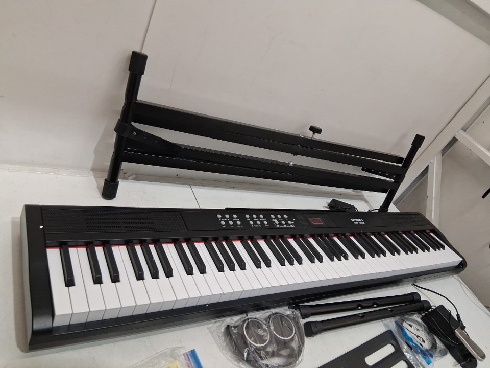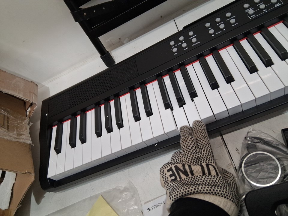 Please note item has some scuffing/marks on keys and some scratches on stand showing previous use. There are about 6 keys that are not working and will need to be fixed for proper functionality. See the images attached, the keys with the fingers on them are not functioning. Item may be missing some hardware.
