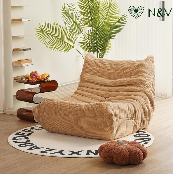 N&V FIRESIDE CORDUROY FLOOR LOUNGE FOAM CHAIR - 31" x 39" x 26"- Beige (MODEL: 9403500)