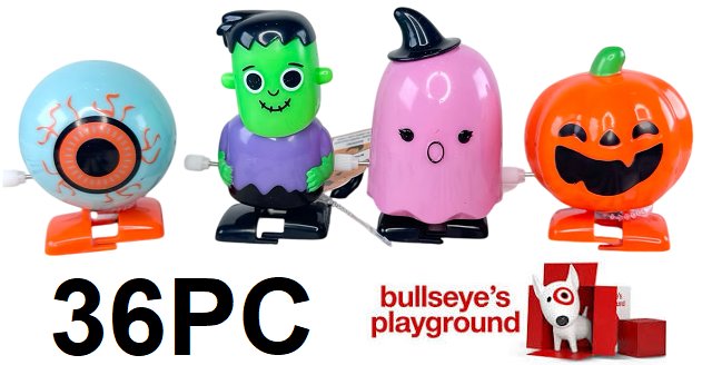 36PC BULLSEYES PLAYGROUND WIND UP HALLOWEEN TOYS - EYE, GHOST, PUMPKIN, FRANKENSTEIN