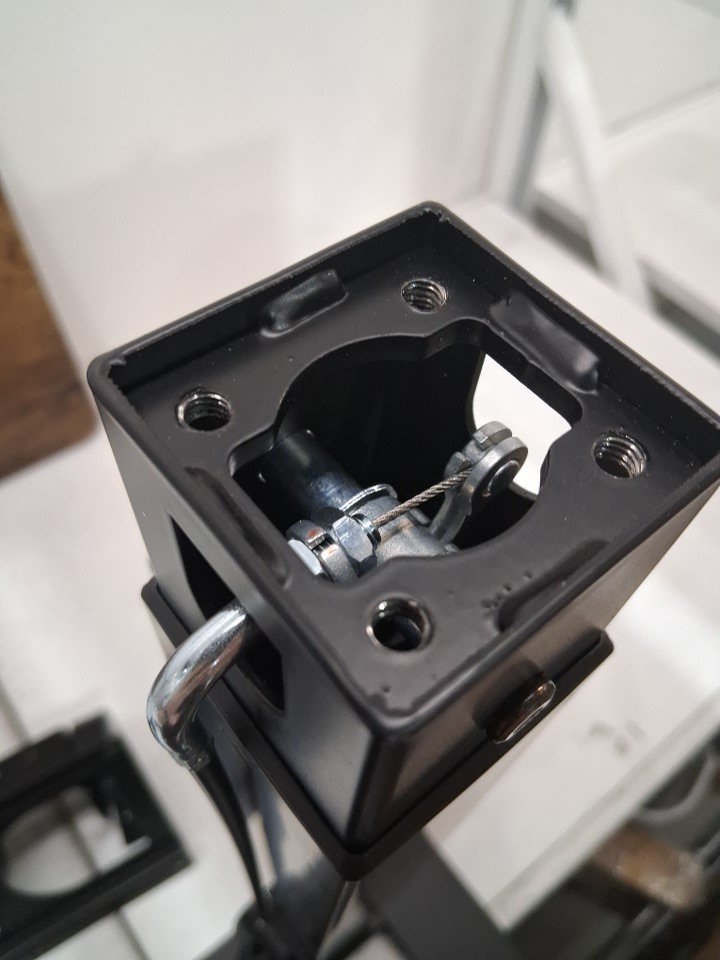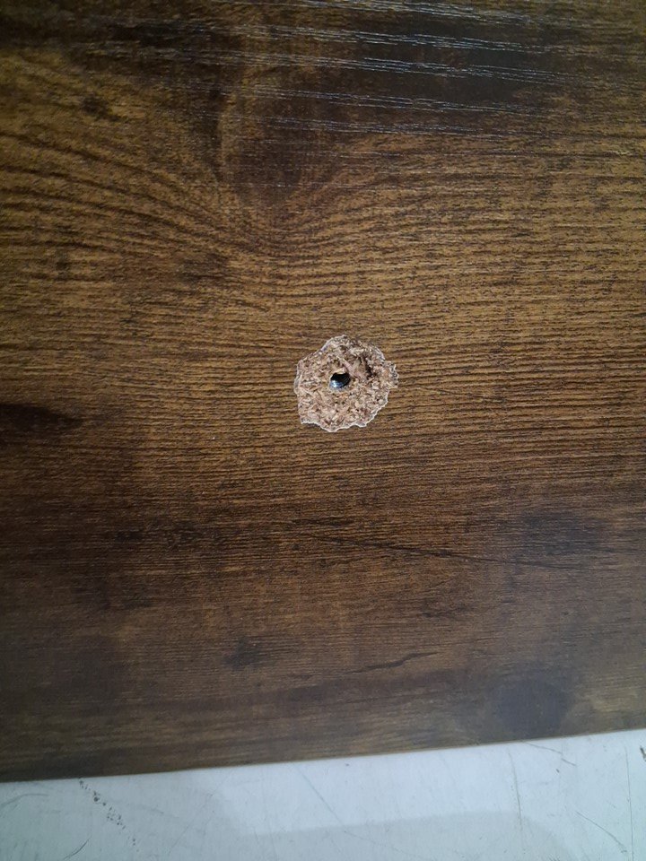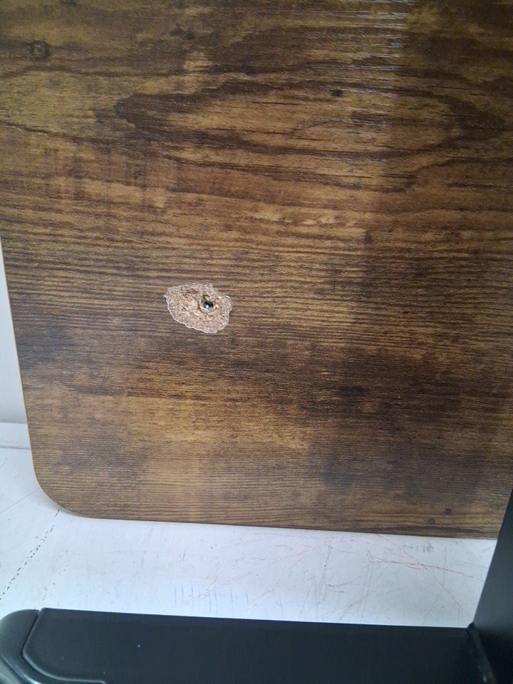 item has some light markings around assembly points, and 2 screw holes have been punctured all the way through the table (see photo)