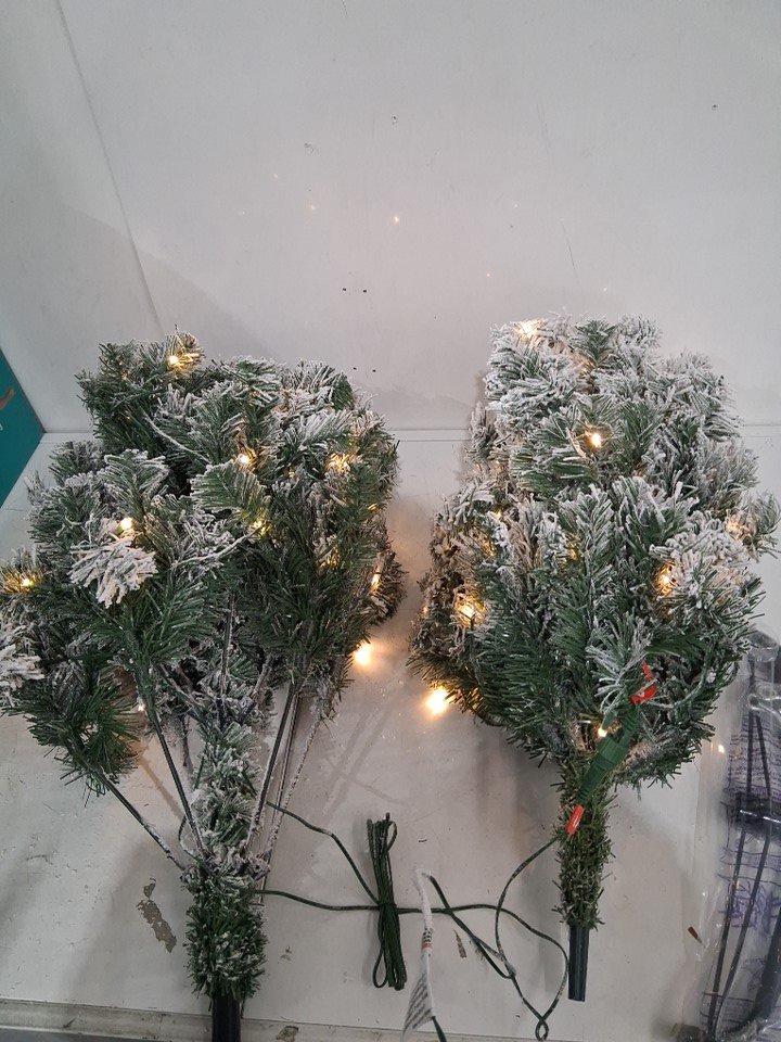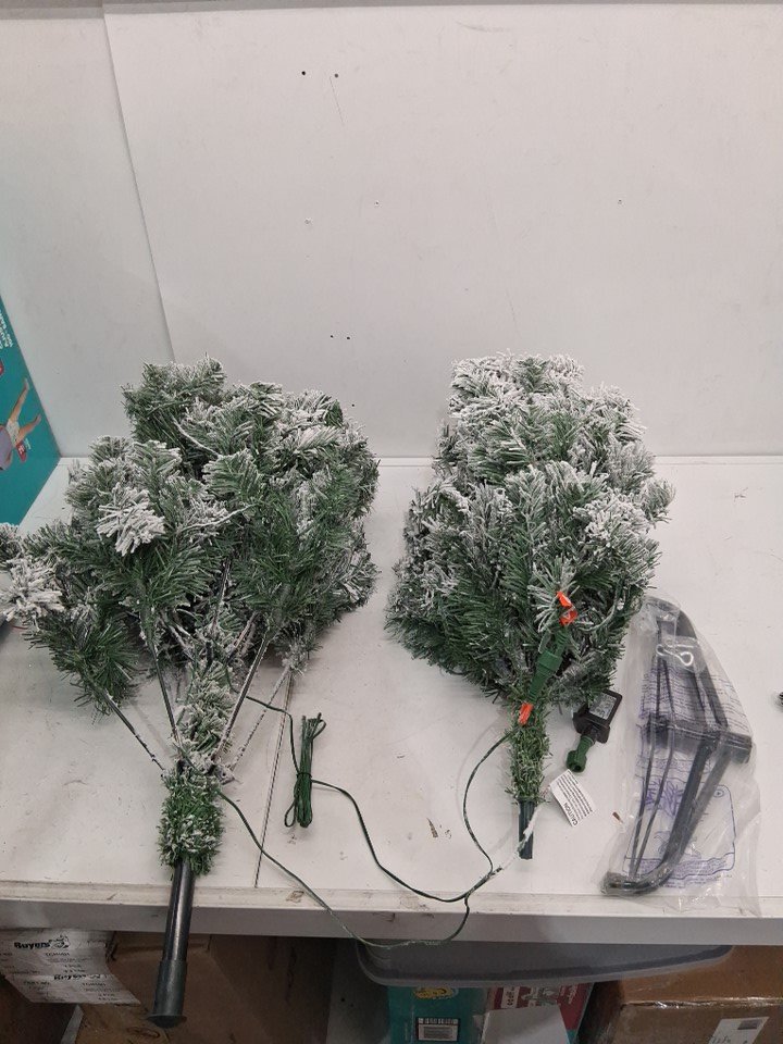 Garvee Artificial pre-lit flocked Christmas Tree - 4.5ft, Warm White Lights, Metal Hinges and Foldable Base - green/white (model: phk_35hgytnk)