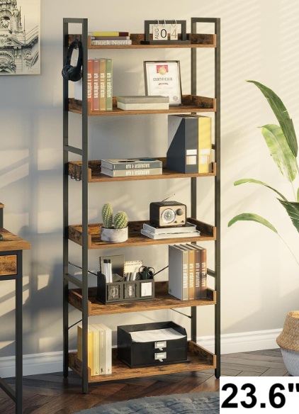 Rolansta 6 Tier Bookcase with Metal Frame- 23.6" WIDE - BROWN (MODEL: SH012-V2-YW6-RR)
