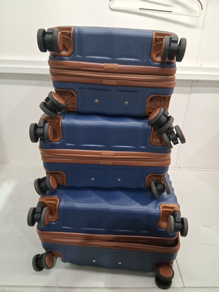There are scuff marks on the suitcases and the wheels show signs of previous use. (Please see pictures)