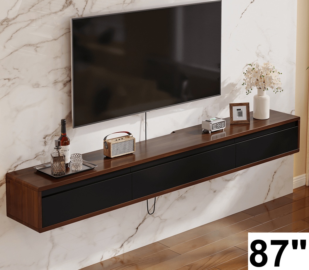 floaticasa wall mounted floating tv stand with 4 drawers, fully assembled - 87" x 9" x 9" - walnut/black