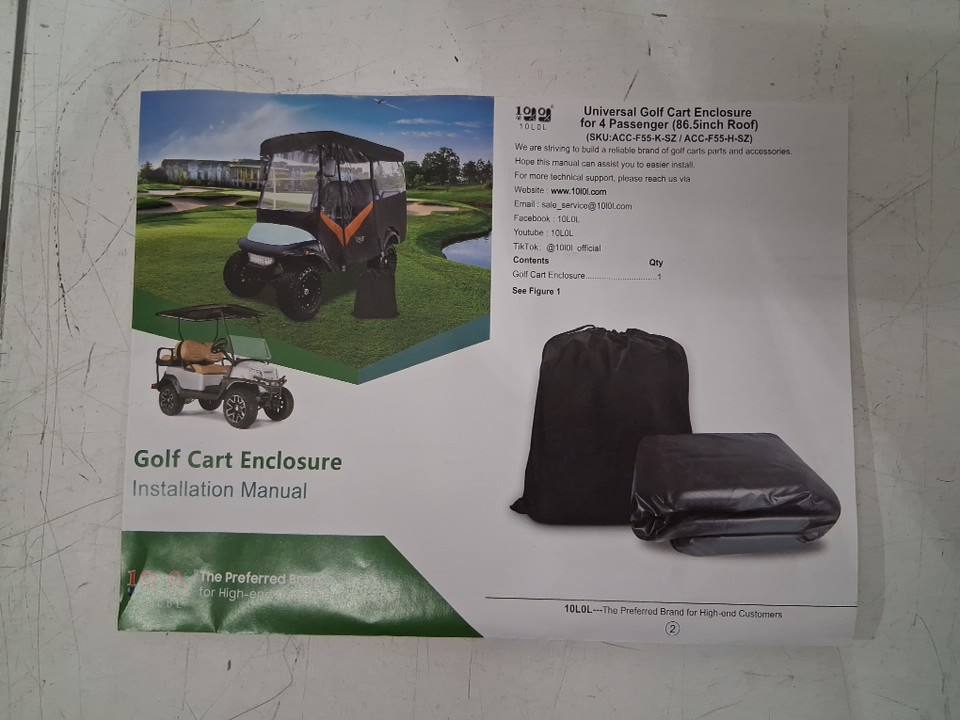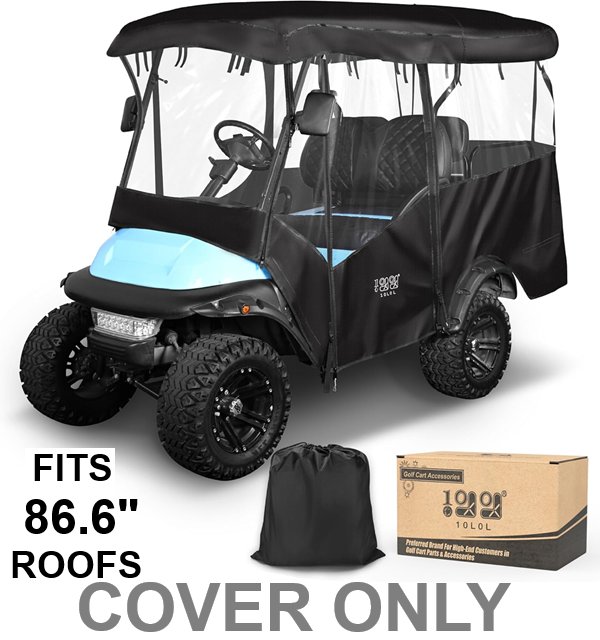 10L0L Waterproof Driving Enclosure for golf carts - Fits roofs within 86.6" ONLY - Black/Clear (Model: ACC-F55-K-SZ)