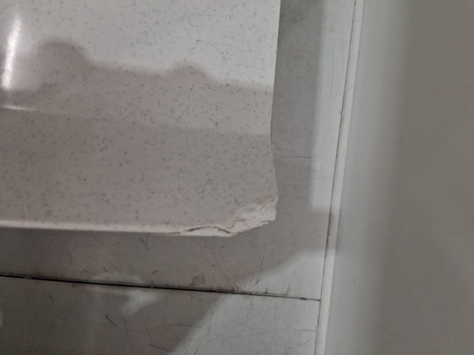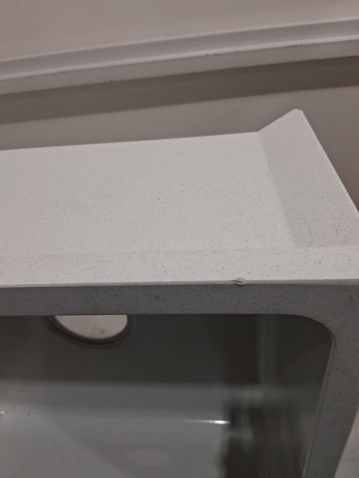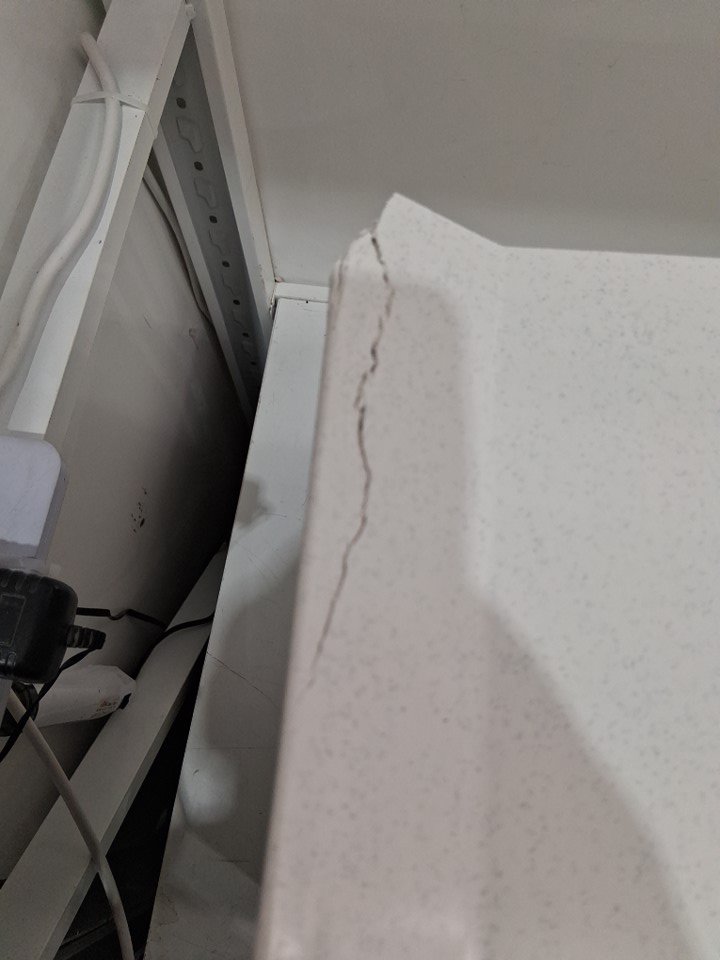 Cracking/chips on corners, does not appear to go all the way though to basin. See photos.