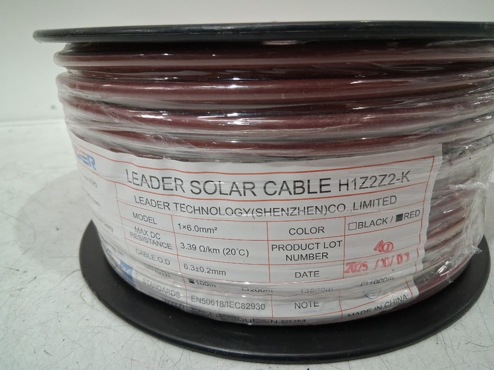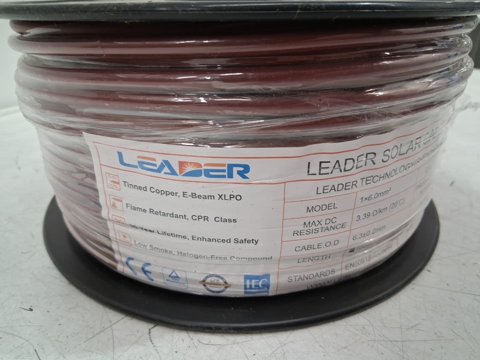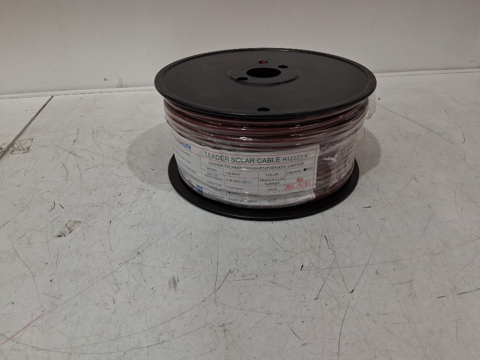 LEADER SOLAR CABLE FOR SOLAR PANEL CONNECTIONS - 328FT - 3.15MM -1500V - 3.39 Ω/Km - RED (MODEL: H1Z2Z2-K)