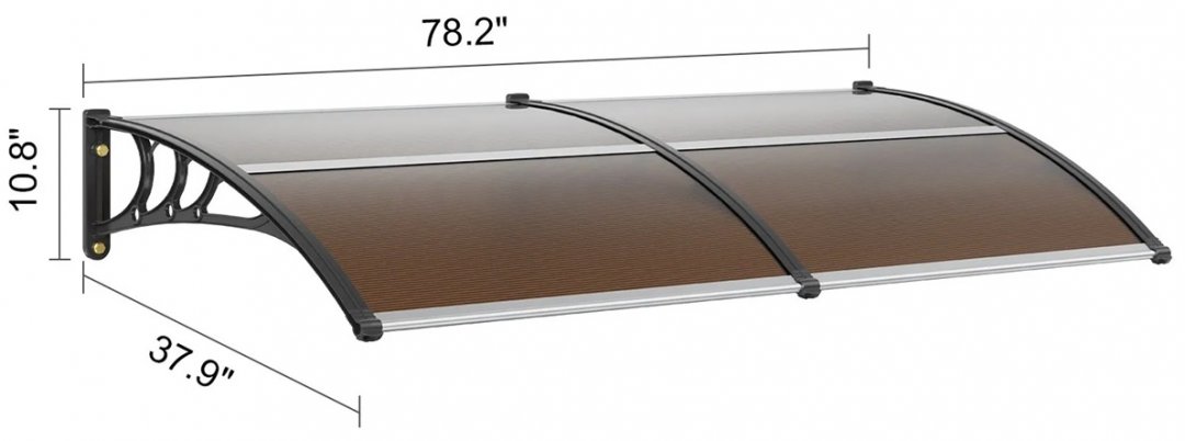 VEVOR OUTDOOR SUN SHADE WINDOW DOOR AWNING CANOPY, UF50+ PC, WATERPROOF, PROTECTION AGAINST RAIN, SNOW, SUN, & UV RAYS - 80" x 40" - brown/black/silver (model: CZPC40X80B)