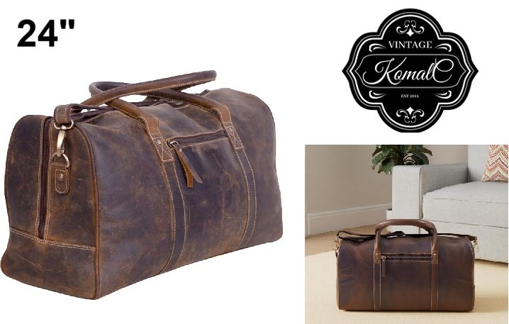 Men's Komal Vintage Passion Leather Duffel Bag - 24" - Brown Distressed (STYLE:‎B07VTQFF11)