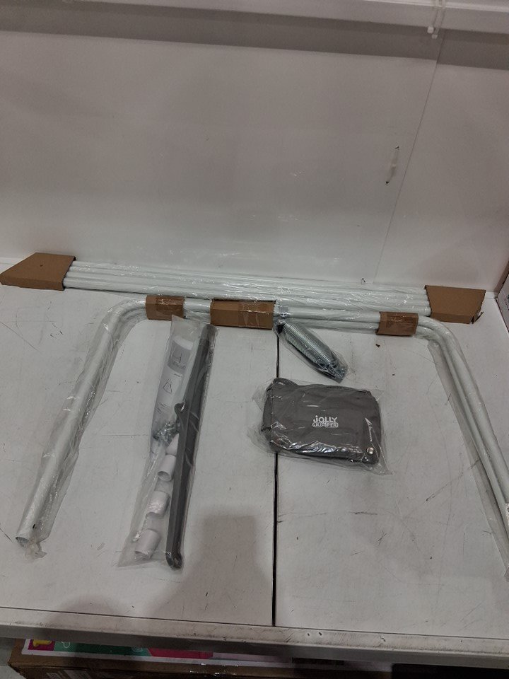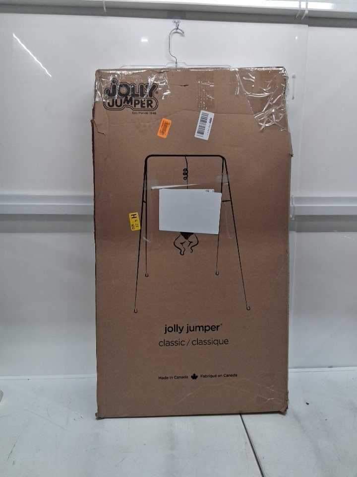 Jolly Jumper Classic Portable Baby Exerciser With Grey Fabric Saddle - 28 LBS Max - White/Grey (Model: 109)