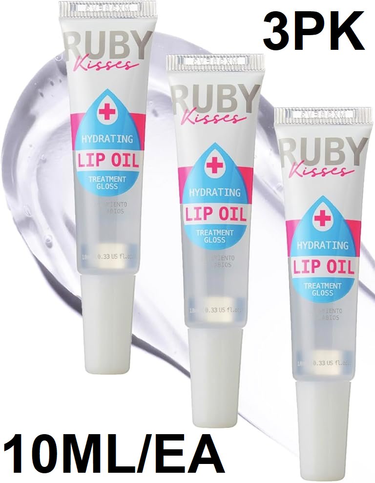 3pk ruby kisses hydrating lip oil treatment gloss - 10ml each