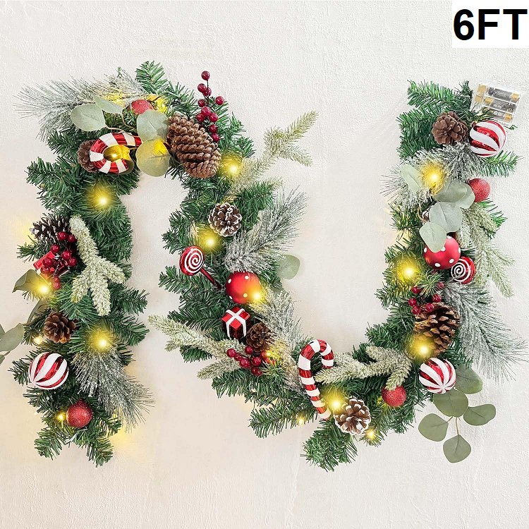 Wanna-CUL Pre Lit Battery Operated Christmas Garland with 30 LED Lights AND Ball Ornaments - 6FT - multi colour