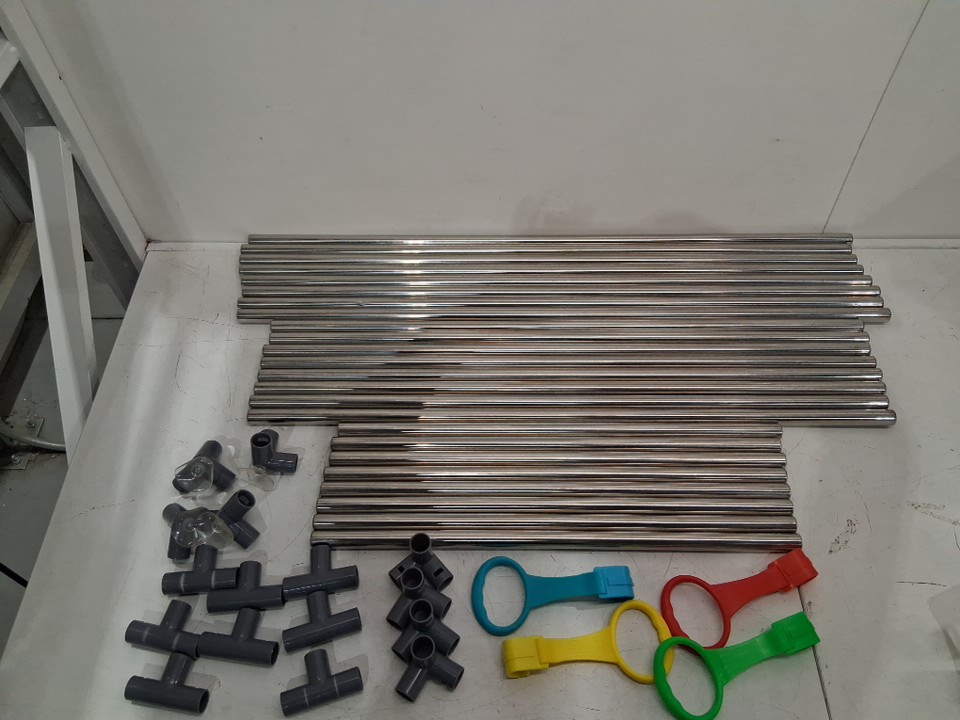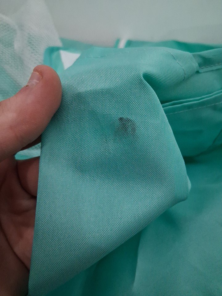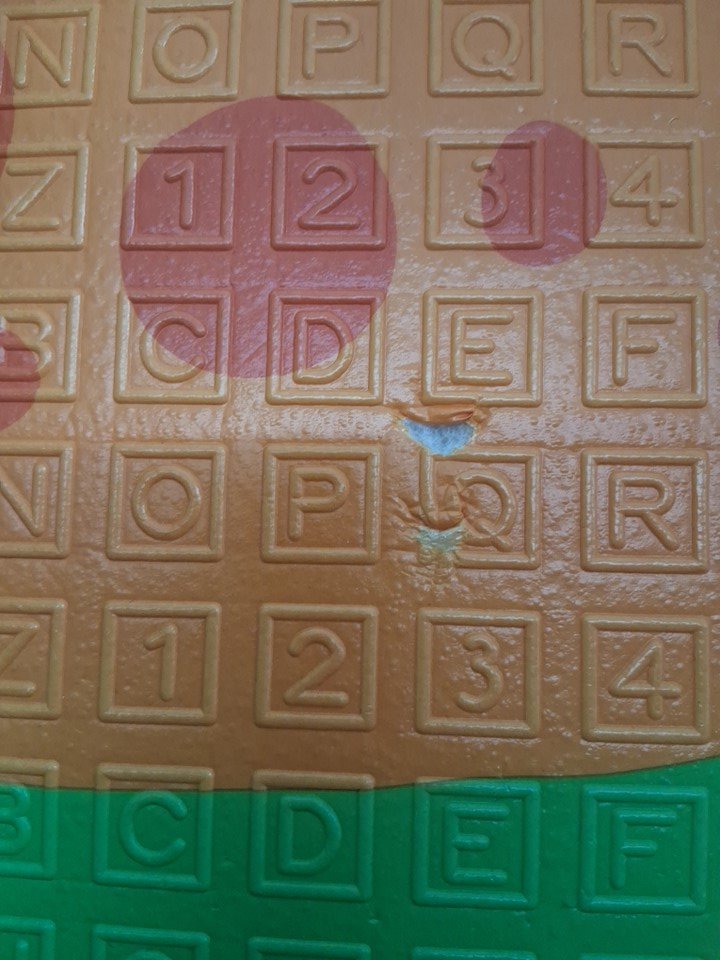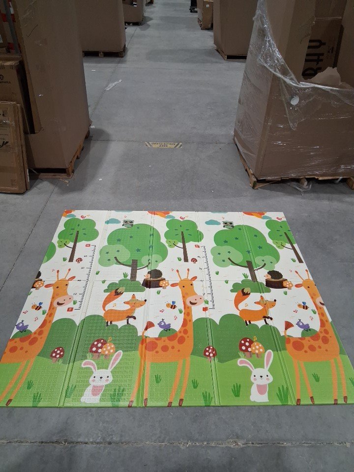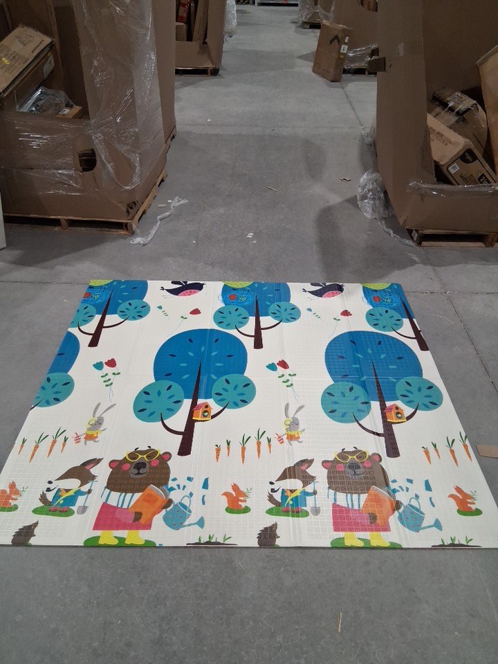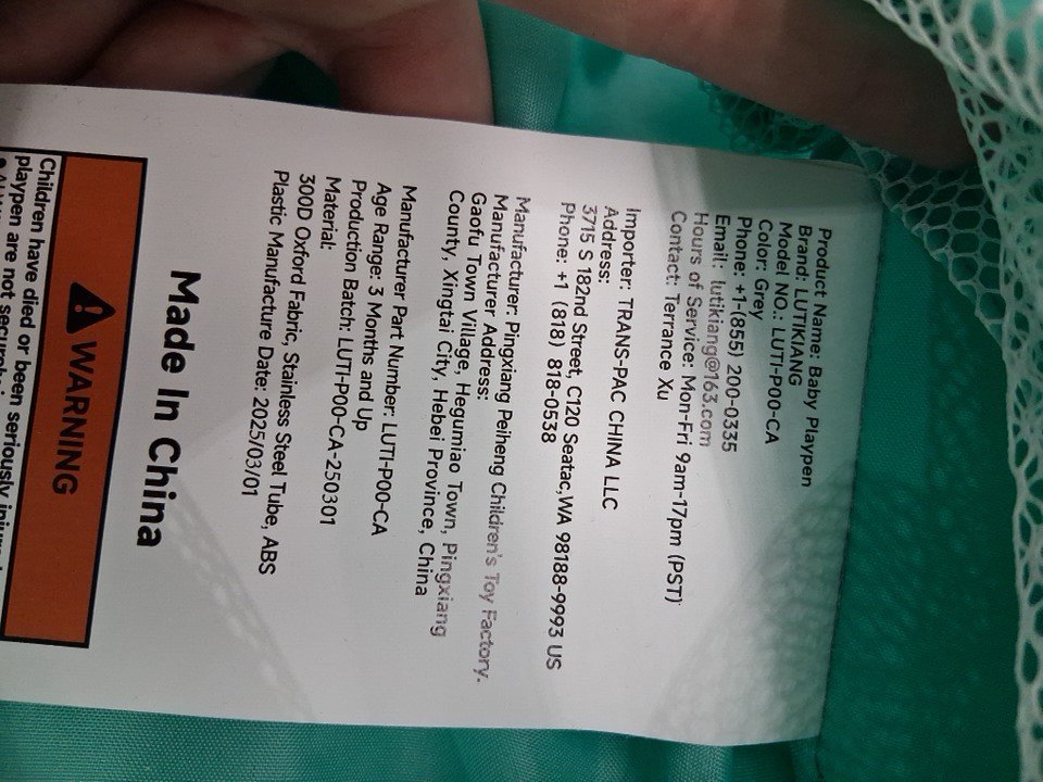 There are a couple of small scuff marks on the poles and cover for the baby playpen, and there are also a couple small tears on the foam mat from previous use. (Please see photos)