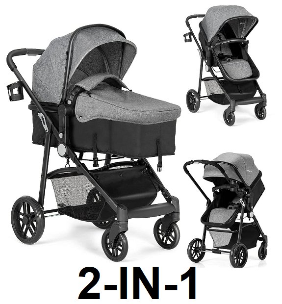 baby joy 2-in-1 BABY STROLLER convertable carriage bassinet to stroller - 43" x 37" x 15" - grey (model: bb5636gr)