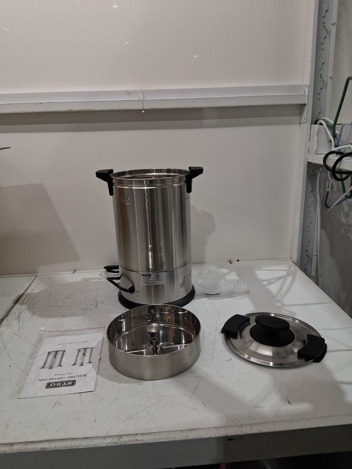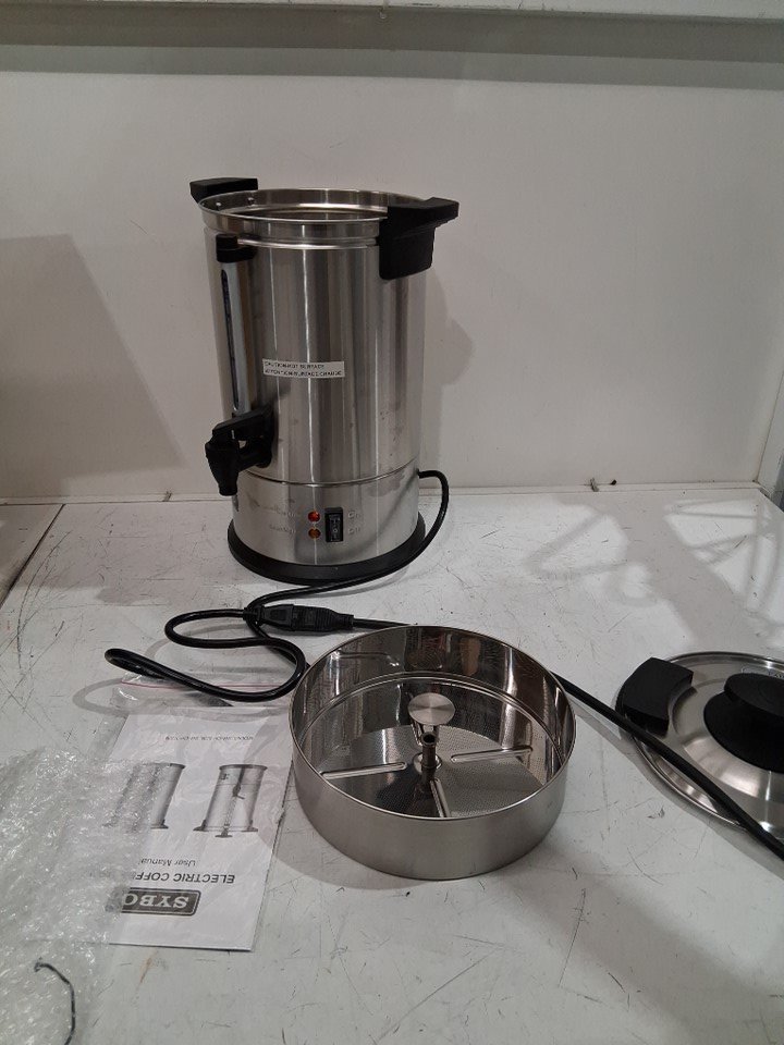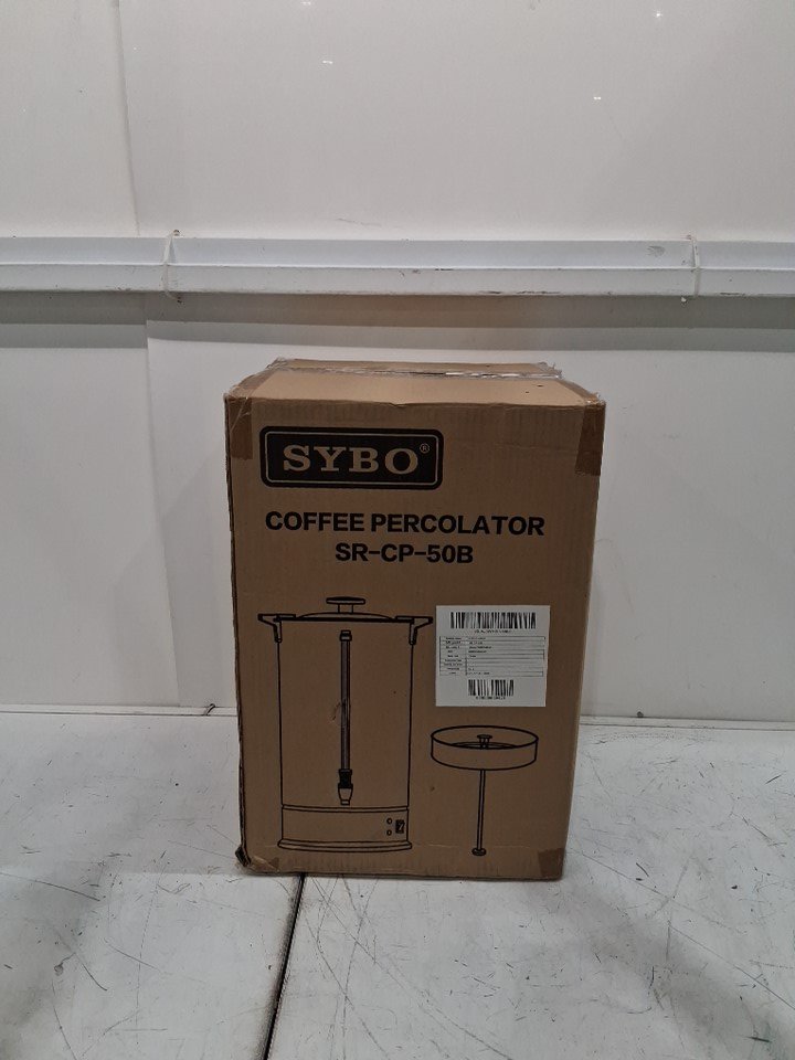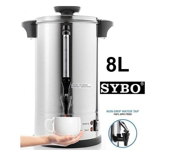 SYBO COMMERCIAL PERCOLATOR COFFEE MAKER/HOT WATER URN - 8L - CHROME/BLACK - (MODEL: SR-CP-50B)