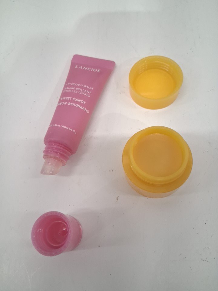 the pink glowy balm has been used previously and other item appears new - see photos